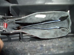 8. From underneath the console tape the edge of the boot to the plastic, and then reinstall console again.