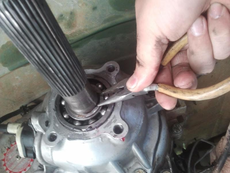 4) If your snap ring was still in it's correct place, use a pair of snap ring pliers to remove it (or needlenose pliers like me