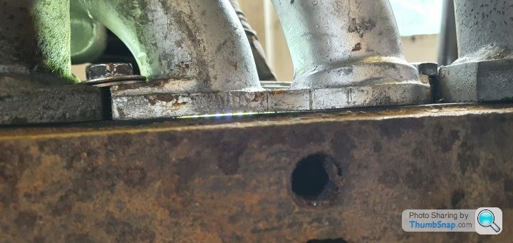 After throwing all this back together and finally torquing the fasteners for the manifolds I saw a crack on the inlet manifold flange, these are a weak point on these manifolds as they have a low point of contact with the bolts as they're shared with the exhaust manifold along with the weight of the carburettor above and the vibrations from being driven caused them to fracture even with additional supports!