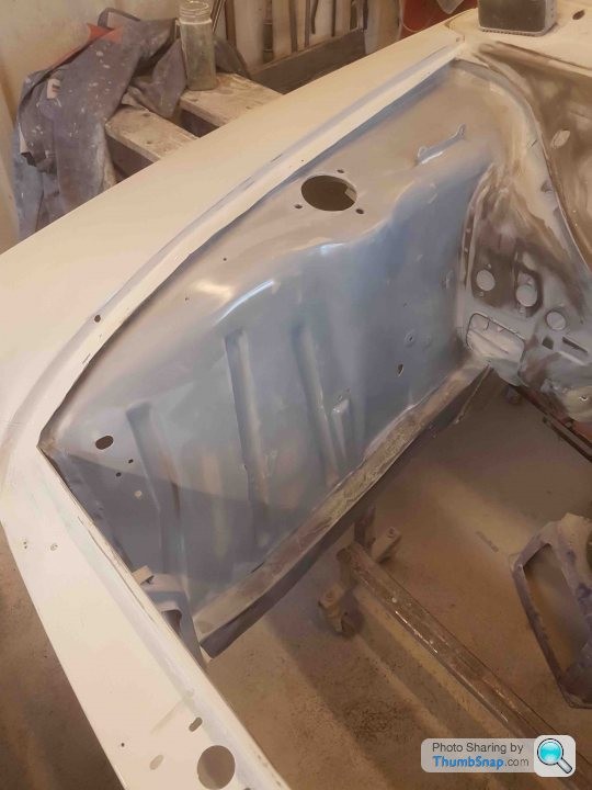 To get the outside of the body in high build came with a new challenge, to date I had been spraying the odd panel or side at most. As you can see in previous posts the Cortina's fit is "snug" in the garage even with my toolbox wheeled outside I can only just get around it if it's positioned correctly.