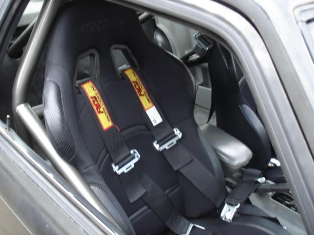Here is a picture of the half finished interior ,In this picture you can see the shifter mounted in the stock ash tray hole as well as the tach mounted on the cover for the stock 5 speed opening,and the passenger seat in,you can also get a better view of the roll bar and how it fits in this picture:
