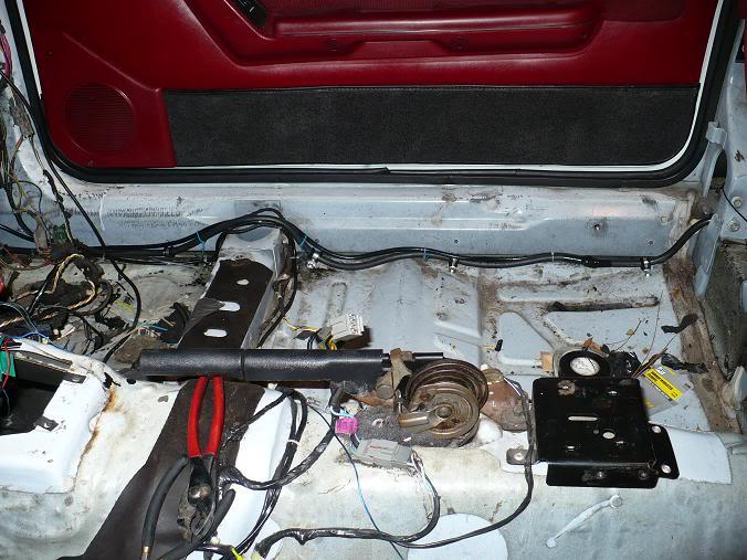 I messed with the car a little today. I soldered some wires and drilled the hole in the trans tunnel for the engine harness.
