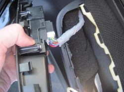 look on the backside of the plastic, finding the connector for the window / lock control, and push the clip holding the connections together, releasing the cable.