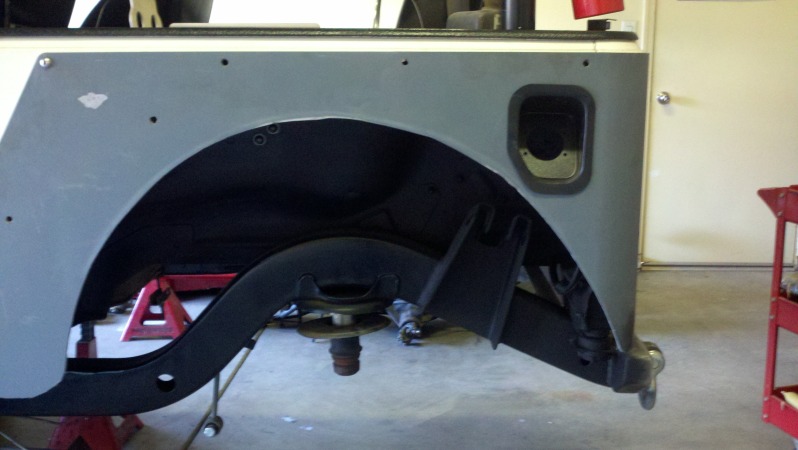I made the cut for the new gas filler bezel. And I knew the rub rail would overlap the bezel quite a bit, but I'm not willing to move the bezel (actually I can't, unless I move it to the back of the tub) It's up as high, and as far over as possible. My thoughts right now are to cut off the two mounting brackets for the rail and have it only attached at the ends, much like the front rub rail. I think this will be a cleaner look.