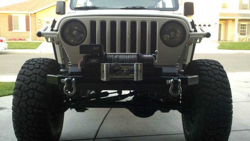 Next was something I've been meaning to do for a while now. Ever since I got the Metalcloak fenders, my Smittybilt "classic" bumper has just looked Loooong to me. And now with all the current stubby style simple bumpers out that I really like, I decided to "bob" my bumper.... I cut out 4 1/2 inches on each side and welded the caps back on. Came out pretty good I think, and now maybe I get my tire started up something before my bumper hits it. And it saved me from buying a new one, although these aluminum ones keep calling to me....