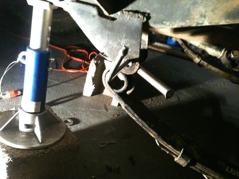 Well I had a time with the spring hanger bolts on the frame. I wanted to change out the spring bushings and install new sleeves. As usual the bolt and sleeve were stuck together. Luckily I had a portable vise to press them out, just awkward due to the size. Some pics.