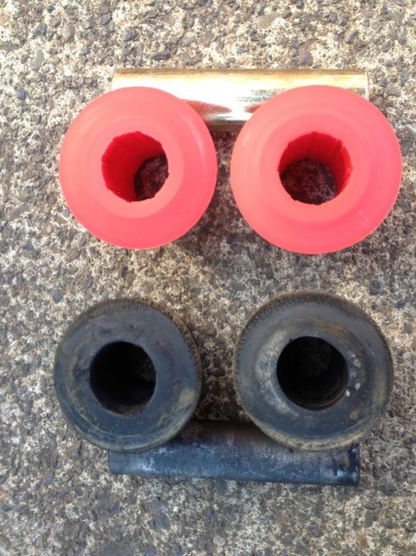 So today I got my e brake shoes and the rotors for the 8.8 I am almost ready to start putting this axle together! Today I also replaces my front spring frame bushings, it made my steering more responsive which is a good thing! The only reason I replaced them was because when it was flexed out they would tweak real bad and also my shackle were't sitting straight! I think I may go ahead and replace the rears to!