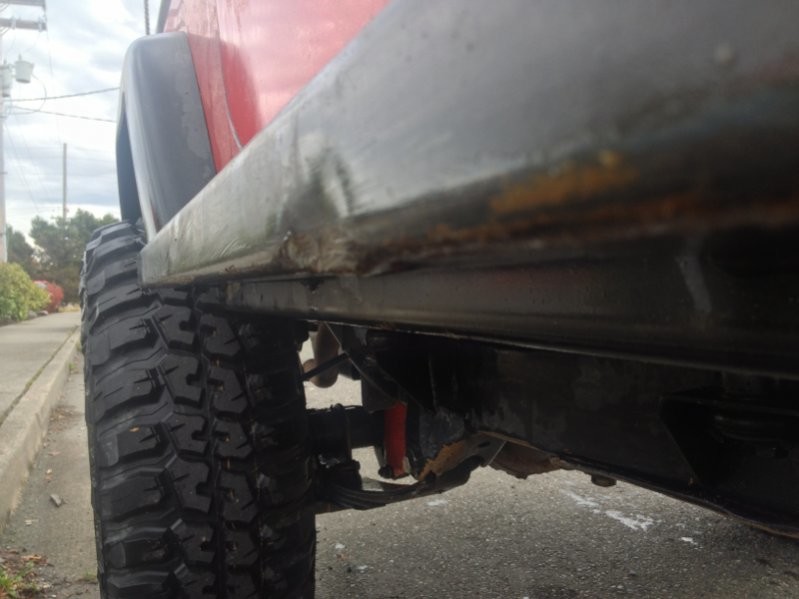 Lol the poor little ax5 seems to be holding up to my abuse well besides the synchro's going out but hat been like that since I got the jeep. I don't really understand the different t case ratio's and how they work I just know I will have more grunt in low range with the teracase....... Any way I went out will a couple friend for some Sunday wheeling and had a very long day. My buddies Xj lost his lf axle shaft, upper and lower ball joints, and his rear drive shaf in less then 5 seconds haha took us 3 hrs to get him going again lol. Sorry I didt get any good wheeling shots. Almost forgot I put a nice dent in the .120 wall slider tube this weekend Ahhh fun times!