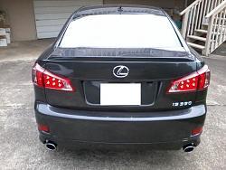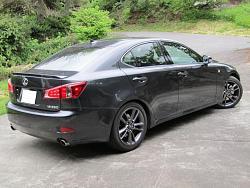 I took a few photos with my cellular phone. I would've wiped down the car and used my digital camera but it started raining when I stopped to take the pictures! I'll take some better pictures in the future. Hopefully I'll have the F-Sport exhaust and other things too.