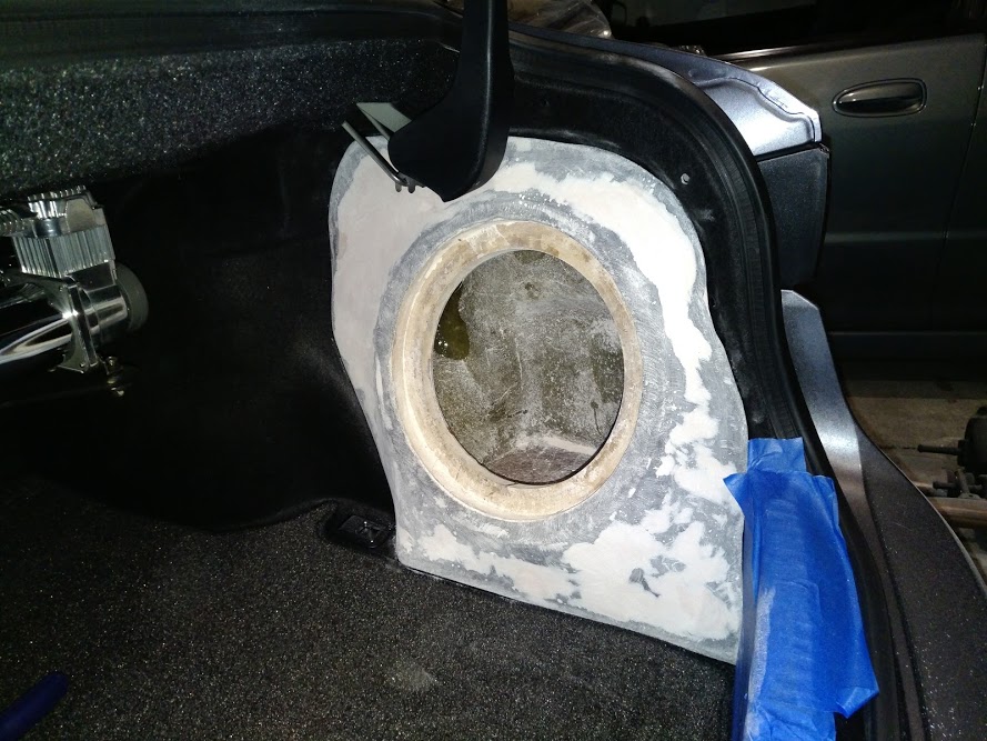 test fit in the car, I think its ready to wrap in black carpet which i will do soon.