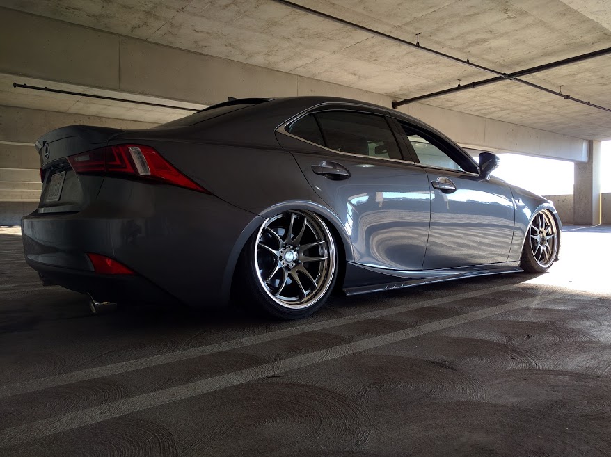 When looking where the wheels sit in relation to body quarter panel it looks like wheel sits much closer on driver side. This is probably not noticed on a factory height car but definitely noticed when you are much closer in tolerance when lowered a lot or on Air so you can see the relationship. I do not think this is issue with just my car as I have spoke with others with 3IS and they also point that they also seem to have issues on driver side more so. So in order to get rid of the horrible rub noise from the tire and bumper, I decided to install SPC Rear Camber arms even though it wasnt part of the plan. But I rather not hear any noise when dropping the car on the Ground.