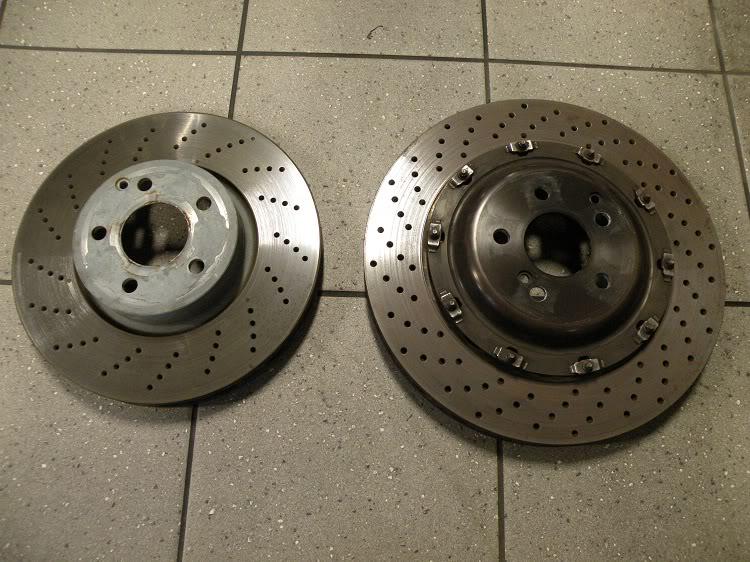 Now the problem is in the rear, the front bolts up fine. My kit is off a W212 E550. From what I can tell, W204 share same brakes as a C207 or W212 E350. Now W212 E550 uses larger rear parking shoes (different from W204), so that is where things get interesting. Front on all vehicles will fit, rear calipers will fit, just not the rotors in the rear. After some research I found that I can swap the rear spindles and convert this to a W212 setup, but I went a different route. I am very good friends with a shop around here that specializes in building custom BBK setup and I opted to make a custom top hat through them instead.