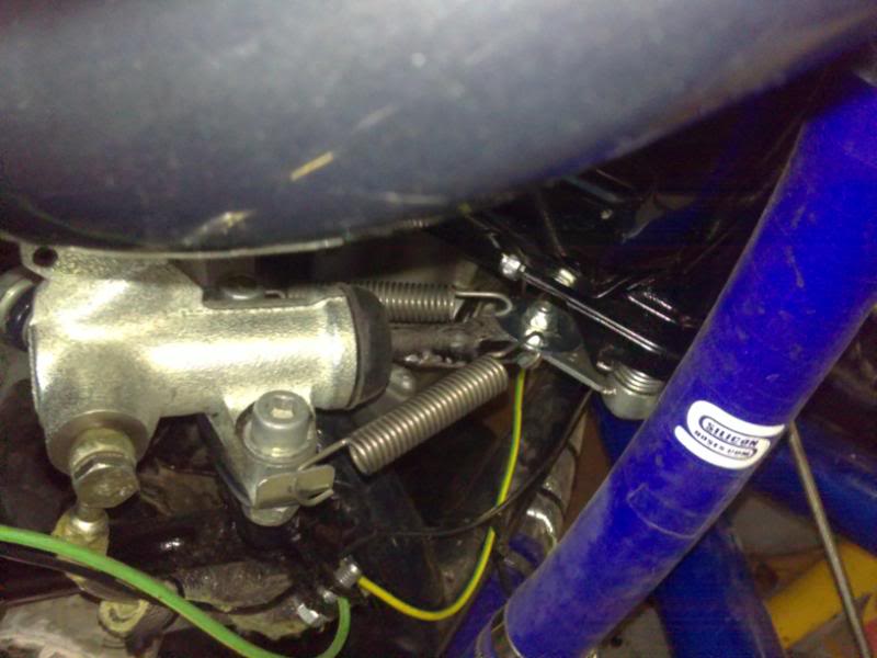 When I was bleeding the clutch the other day I noticed it wasn't returning as promptly as I'd like. So A spring upgrade was in order. This time it's 2 mini slave return springs. They are 90mm long and I initially thought I couldn't use them, but I've managed to fit them in. It's still not 100% but it might be ok. We'll see when it's in use.
