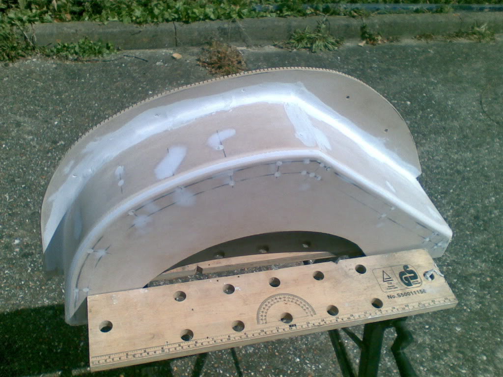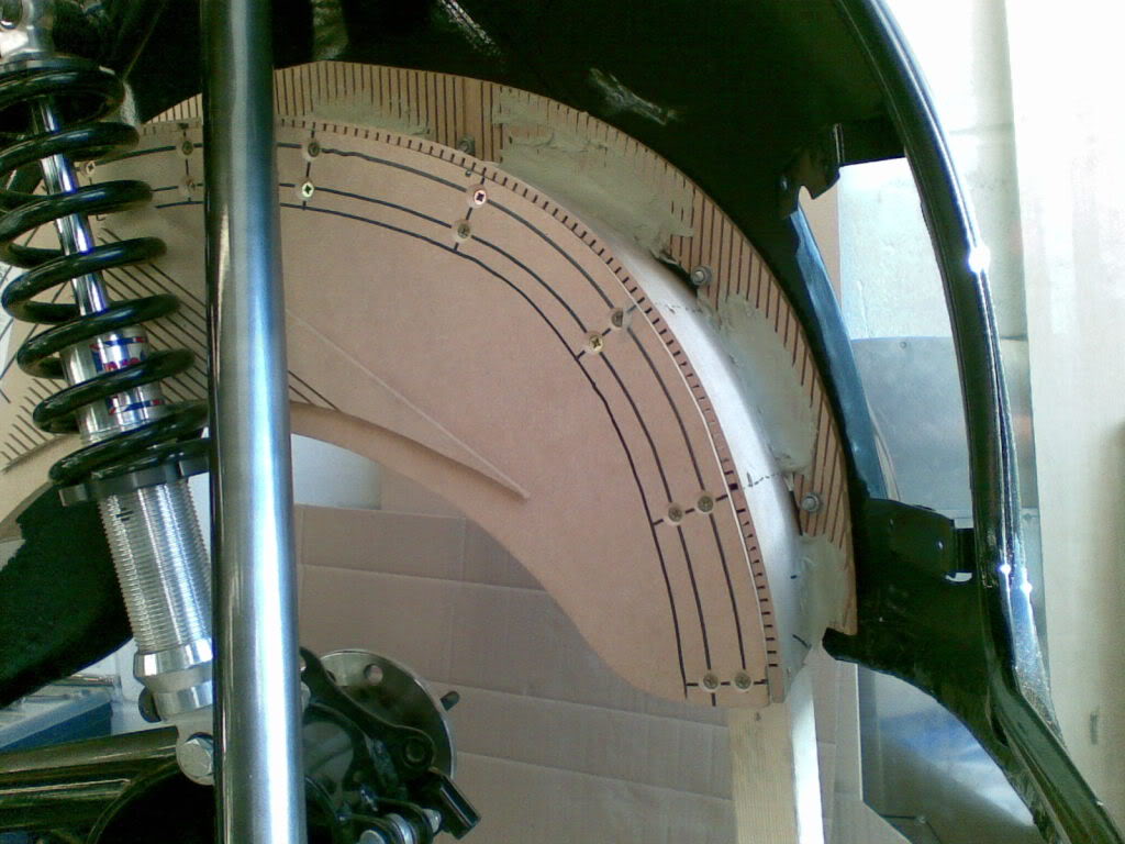 Going to repost the photo's of how I made my inner arches, hopefully this will show how big they are for people that might want a set. I need people to realize that they were made specifcally for my car and the big Zcars arches that are on it, combined with fitting flush to the Zcars spaceframe forward of the wheel. What I am trying to avoid is people ordering some and then telling me they are too big or that they dont match the cut for their outer arches.