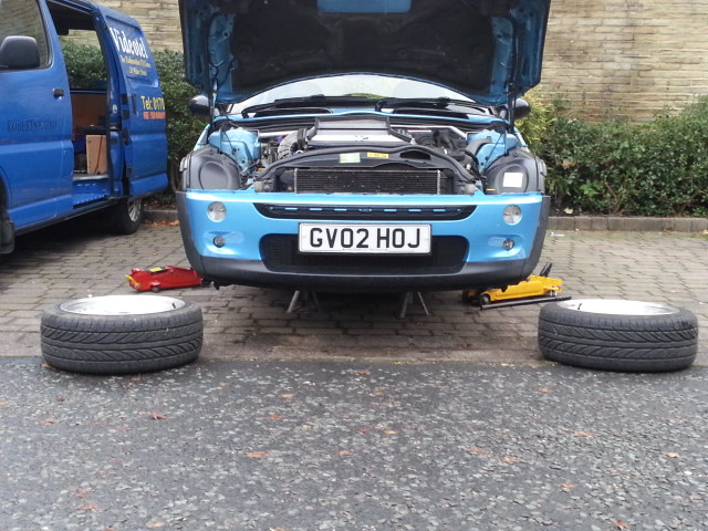 because of the difference in length doing one side then the other puts torsion on the anti roll bar and makes it a bit hardet to fit, this is why i say do both side at the same time.