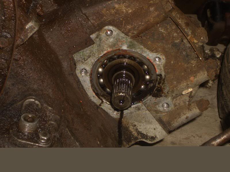 The removal of the engine from moke, allowed a closer look at the oil leak, The plate that covers the Output drive was removed, but i cant seem to be able to get the rubber seal out, i think its been bodged in the past with gasket sealer.