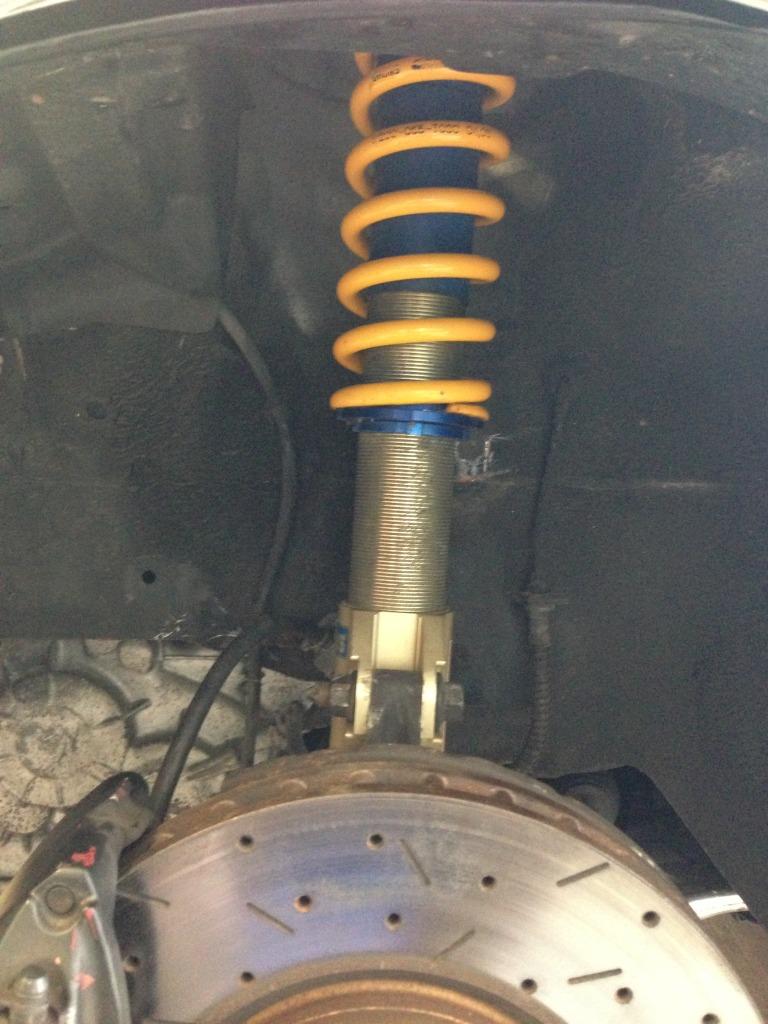 Ohlins are on! Don't mind my hideous calipers left over from the previous owner, I just picked up supplies to refinish them. I also just ordered stainless lines and some Motul fluid and am planning on bleeding out ALL of the gross fluid that's left in there. I also spent some serious time and sealed my system all up, and for once in my life I have 0 boost leaks whatsoever. Car feels great and I think it's officially ready for the tune tomorrow! VD numbers coming tomorrow night.