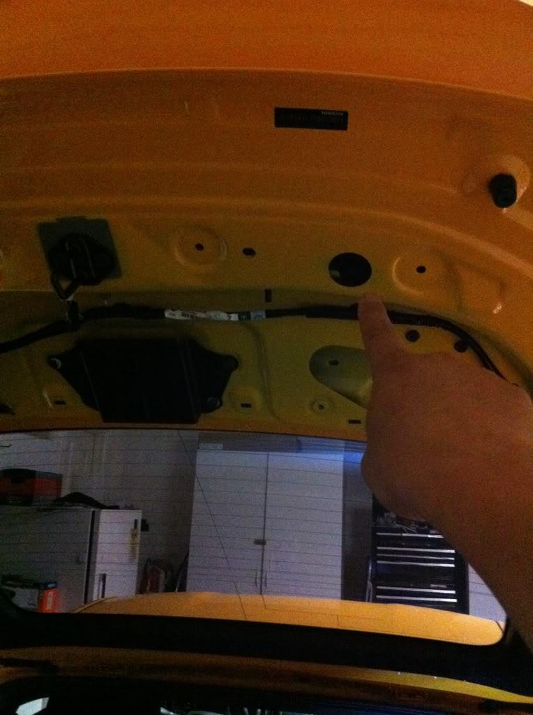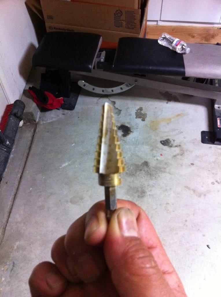 1. Use the uni bit to drill holes where the bolts bolt into the OEM wing. Near the brake light fang. Make sure the holes are just big enough to fit the 10mm nuts snug.