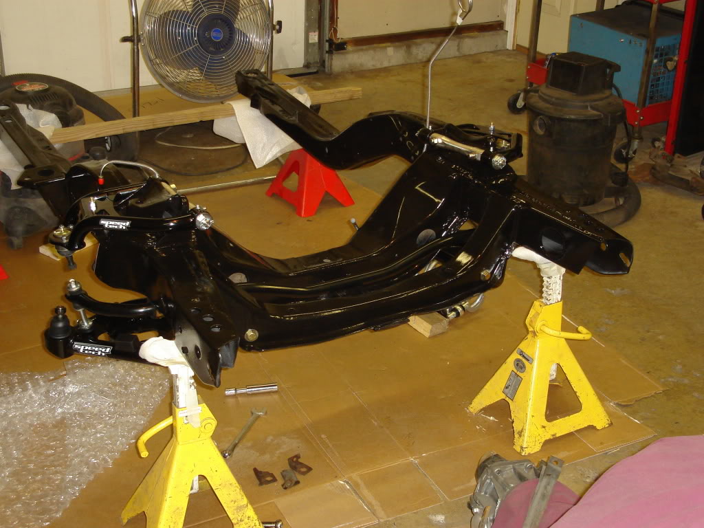 The big day finally came LOL the car is finally off of the rottisserie. Placed it on jack stands for now intill I get the subframe all put back together.