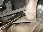 There is also a central jack point, but we opted to do one jack at a time, but took a pic so you can see how you could use the central jack point. You can use pieces of wood to help distribute the weight / not stress the bolts. We didn’t feel comfortable with this when we started and did the one side at a time method a la Terry’s tutorial. (When we were done with the exhaust swap we used the central jack point to lower the car and it did not have any visible stress or change in structure).