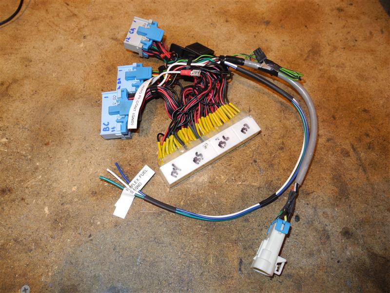 My Hydra Harness fresh from being modified for the flex fuel sensor (note three wires without a harness):