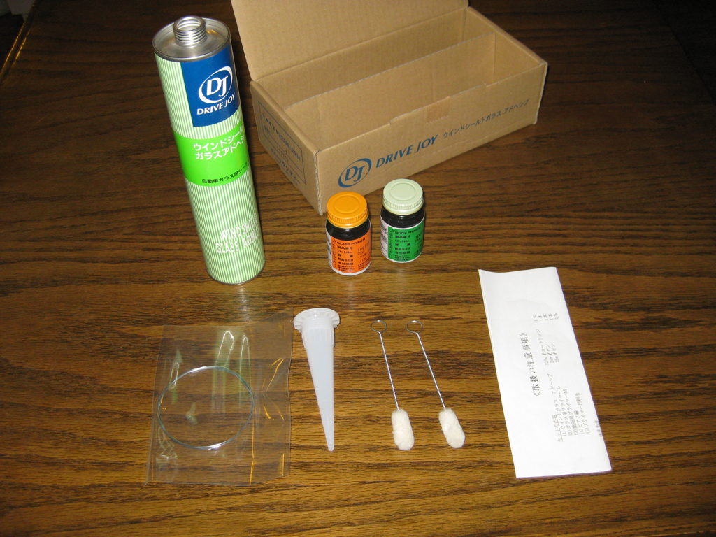 Got my windshield adhesive set in from Japan. After various experiences I no longer really trust anyone to install windshields, so I'm going to be doing it myself. Kit comes with piano wire, body and glass primer as well as the adhesive. I've got a pair of suction cups on order to help install the glass.