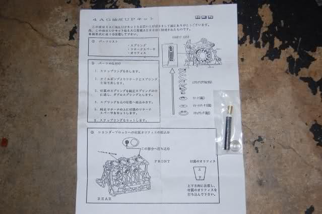 Half the block is assembled...HKS crank is balanced and in, Tomei crank ladders and ARP hardware have been marked and bolted up....(Quick note for anyone building a block as anally as i am....when you switch from stock main bolts to ARP and also add the ladder crank have your builder line bore the block with them on...We found because of the different way the bolts tighten down the main caps line boring was needed). If you look closely at the crank QuickSilver did a little mod by removing the round press in plugs for the oil passage and replaced them with screw in plugs. The purpose behind this is the round plugs somethings come loose and that causes the oil pressure to drop. We all know with the 4age engine oil pressure is very important if the engine is going to last. Again the block has been ported and polished inside to remove all the sand left over from the casting and all the flashes have been smoothed out...this helps prevent oil from sticking to the sides keeping it in the pan where it belongs and eliminates those little sand particles from coming loosing and tearing up our engine. I recommend it to everyone...takes a few hours but worth the effort. You cant see but the oil pump has been ported out and the Toda oil pump gear put in. It also has the HKS oil pressure up kit pictures above in it.