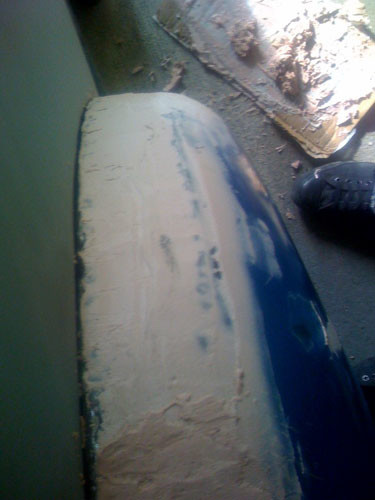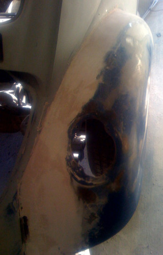 Finished the metal work on the driver side fender and got down the first layer of bondo.