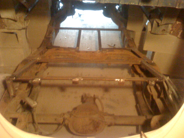 Next, I'll weld some caps onto the front of the frame, and weld in the "bolt-in" 6 point roll bar plates I bought. I'm doing this so I can remove the body (plateswelded to frame, the cage will be inside the flooring once built and I'll be able to bolt it all up) later down the road if needed. Should make for installing the engine easier.