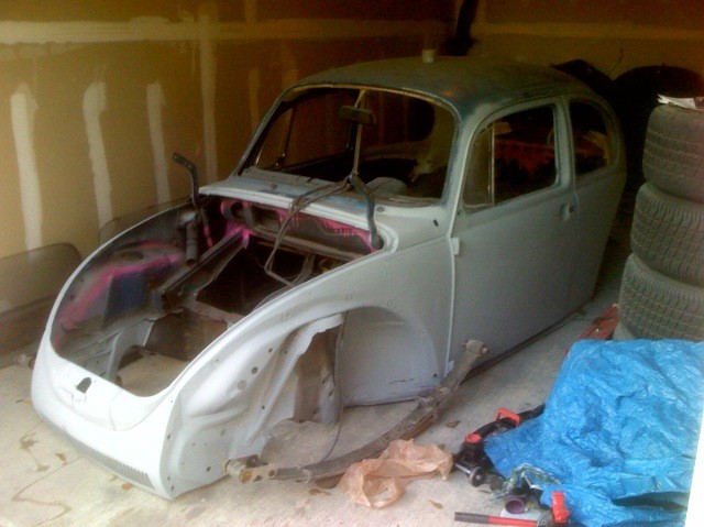 I got some things done this weekend. Finally, someone reliable came out and bought the bug pan, transaxle and motor from me. It took about 4.5 guys, lol, to lift the bug body off of the pan, while on a trailer with the front wheels strapped down, and into the garage. We did it this way cause of the super's front struts.