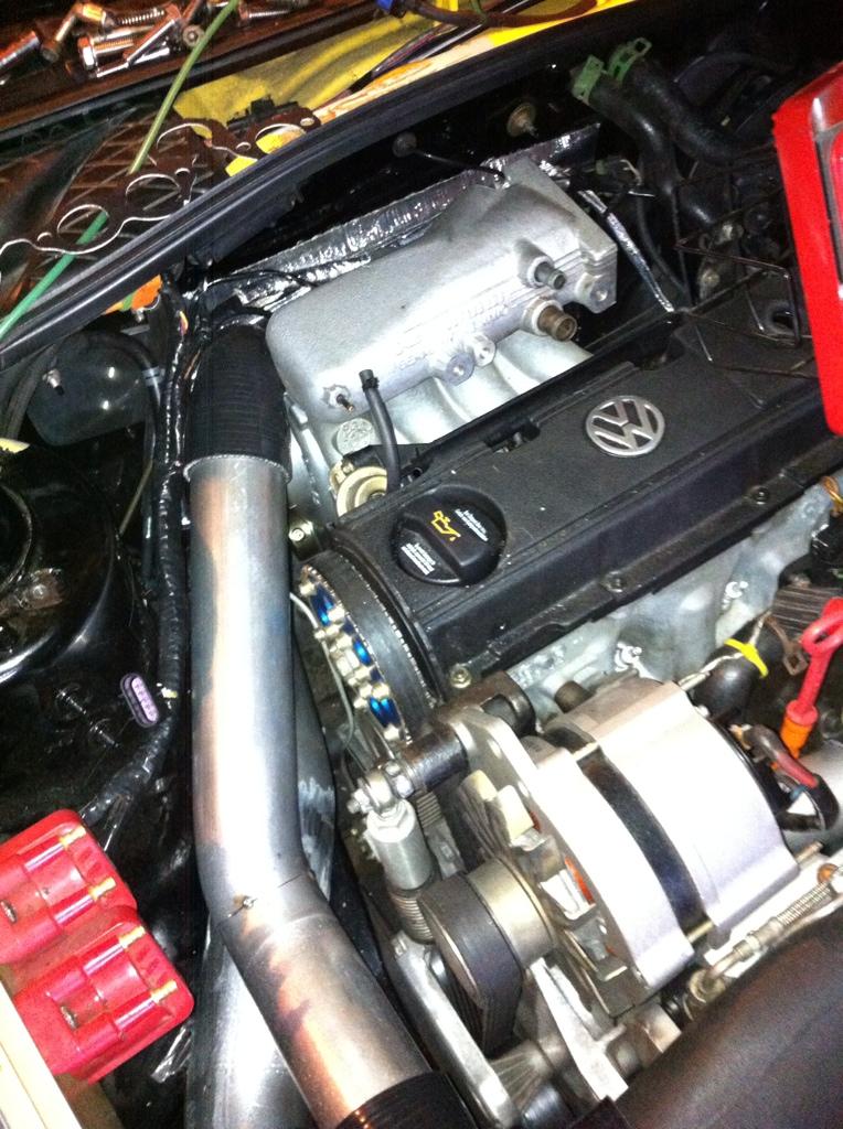 Well for future reference with anyone trying to use the CXracing 8v turbo manifold with a corrado 8v intake. It don't quite fit. There will some grinding to either the intake or the turbo manifold that needs to be done. I didn't get any pics because I was trying to hurry before work this morning. Basically the three long bolt holes on the intake are too thick and will contact the turbo manifold. Guess when I was test fitting, I was just looking to see if it was flat agents the head, not if the holes lines up (can't see from the front). An extra head would probable have been helpful at this time but oh well. Took off about 1/32" on each of the three bolt hole casting on the intake manifold and it clears well. Still plenty of material for the Manifold. I'll snap some pics when I pull it off again.