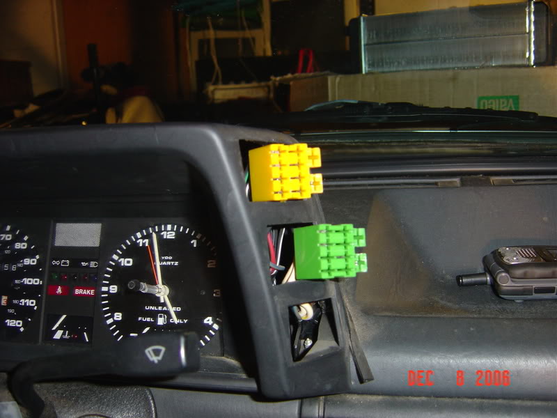 Tuck the plugs through the holes and the trim piece around the cluster should come right off. I put the screws back into the holes to make sure that I don't loose them and so I know where they came from.