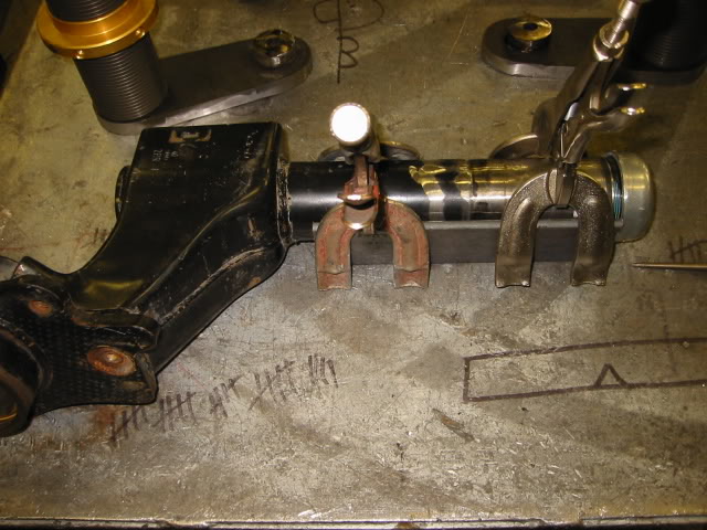 Ok that was a fun day of work. I caught my shoe on fire, the shop is a mess and my back hurts...but the Coil overs are all in.
