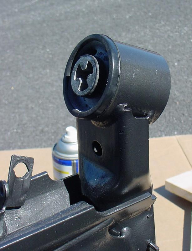 3) The problem is, the new bushings are rubber with a plastic sleeve, so the whole thing wants to give and rebound while you're hammering on it. There was just no way to get it started where it didn't pop back out of the hole when I hit the opposite side. There is a lead-in chamfer on both the bushing and the steel housing. My assessment: these chamfers need to be worked so that the bushing can get started in the hole. Break out a half-round metal file for the housing and some rough grit sandpaper for the bushing, and sand a nice gentle lead in on those puppies. I had hoped to get it done without filing metal, but in my case it was necessary. You might have better luck cajoling the bushing than I did.