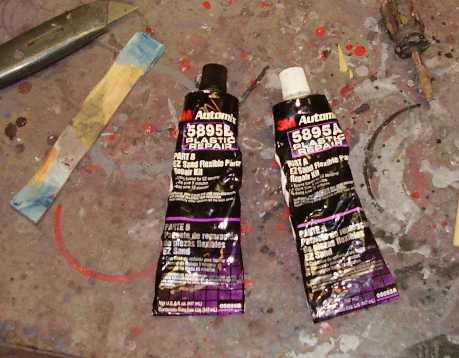I couldnt plastic weld the body panels because the plastic was not the "melting" kind. bumpers were TEO, but the body bits are all some other kind. thankfully, this is the kind that the plastic repair stuff sticks to best.